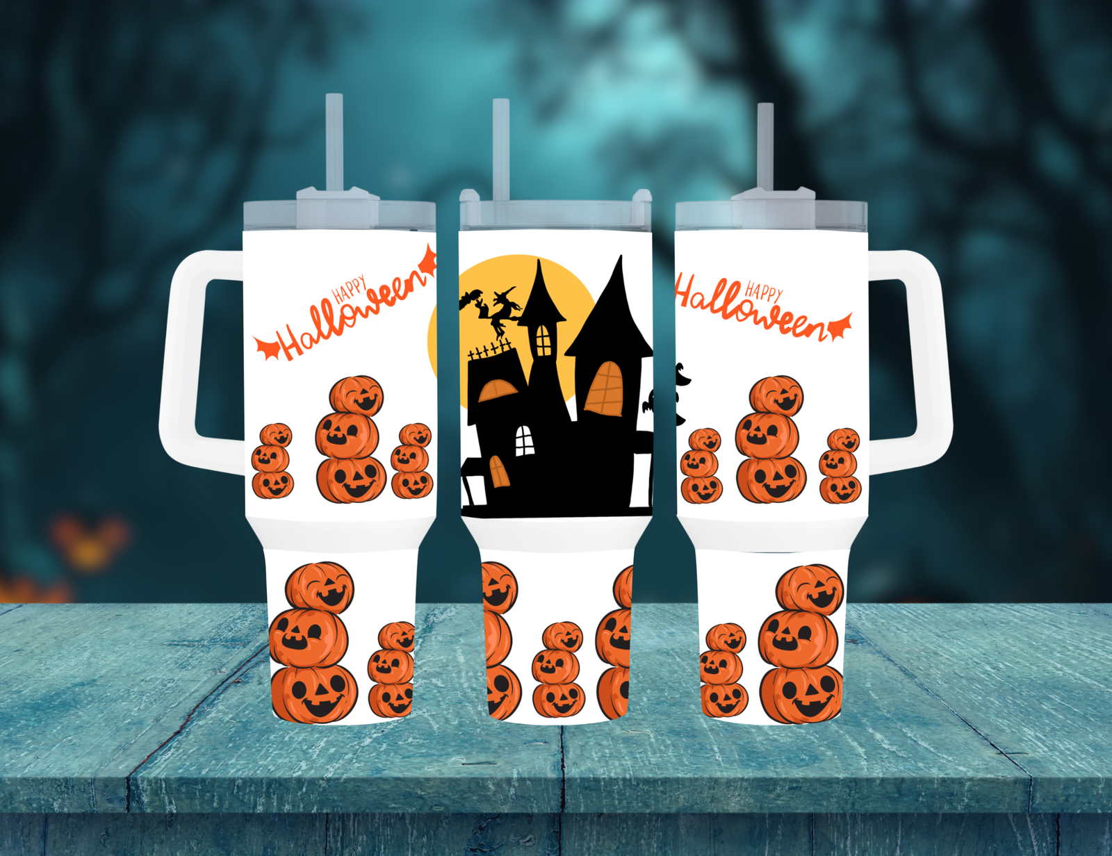 Introducing the Haunted Hollows 40oz Travel Mug with Handle! Perfect for those who enjoy a generous sip of coffee or tea? this mug is both practical and wickedly stylish.