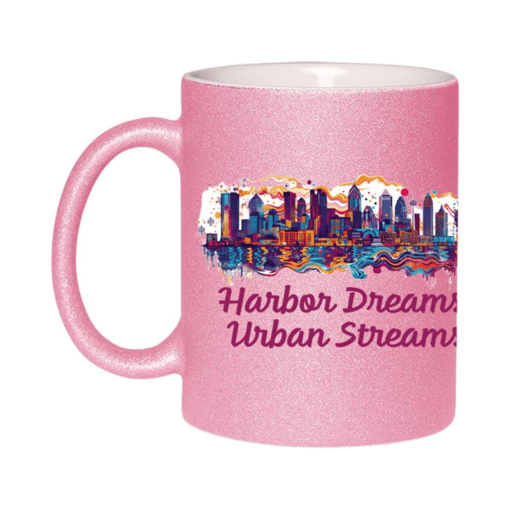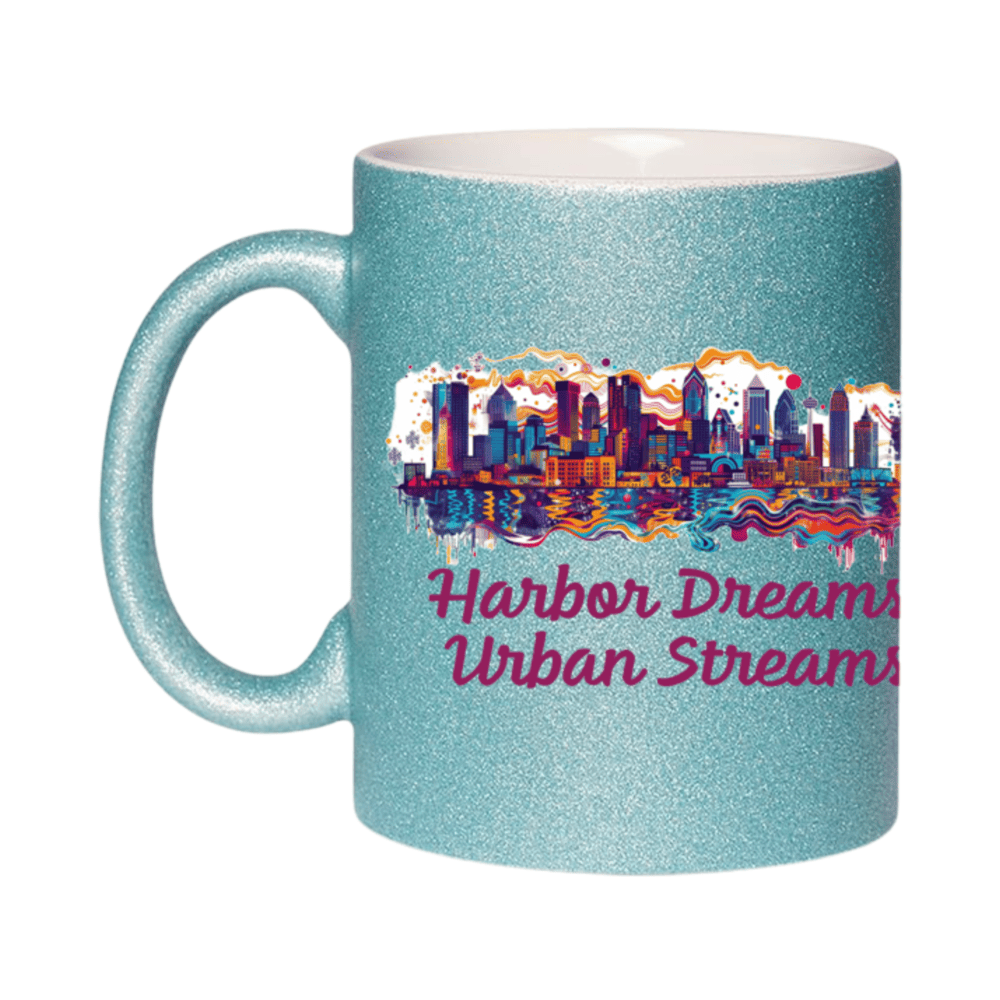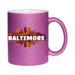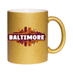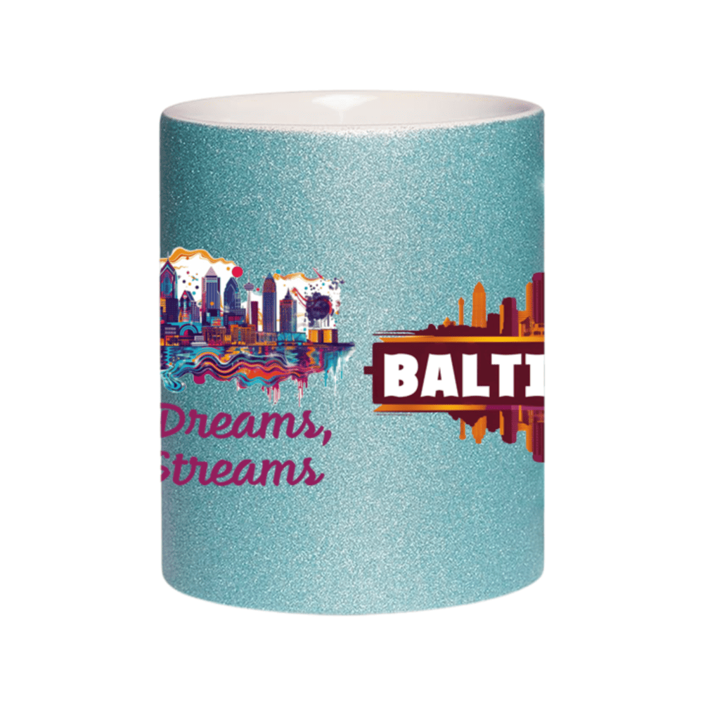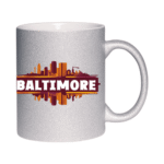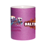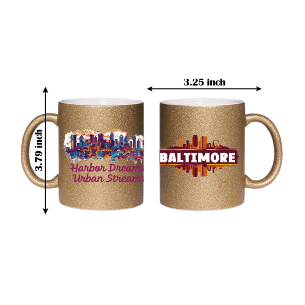 This 11oz glitter ceramic mug features a beautiful Baltimore skyline and the quote “Harbor Dreams, Urban Streams”. It’s a perfect souvenir or gift for anyone who loves Maryland’s charm.