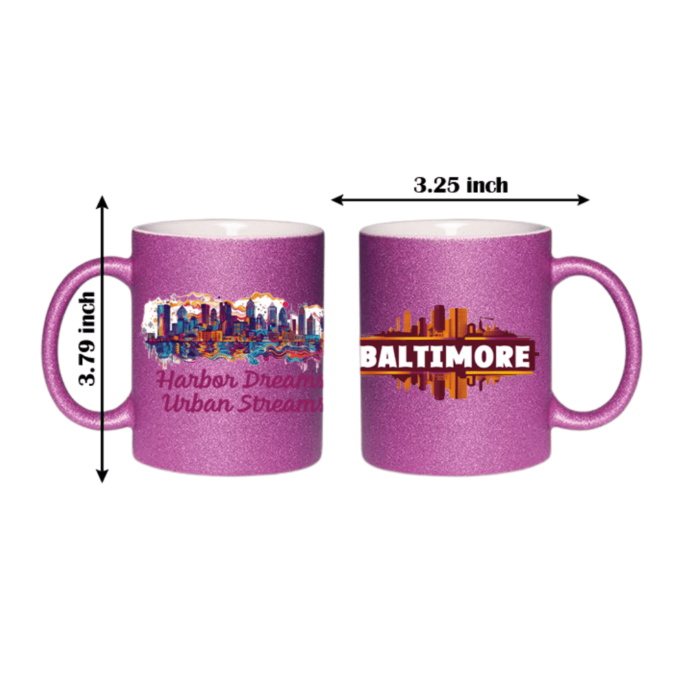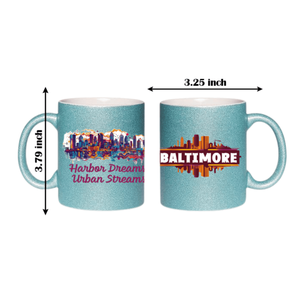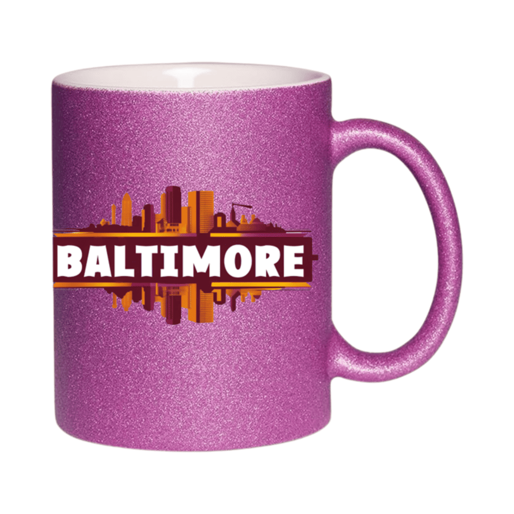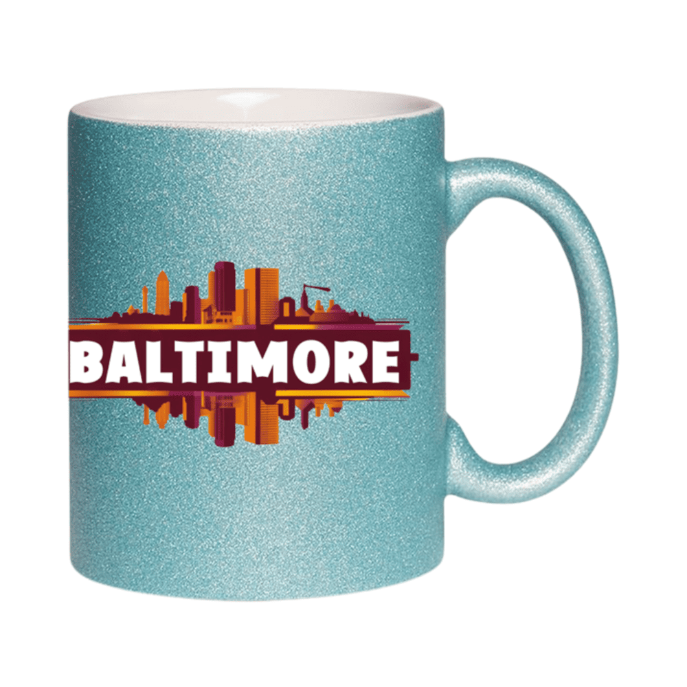 11 oz glitter Ceramic mug with Baltimore skyline design. A perfect gift Coffee Cup (Available in 7 colors)