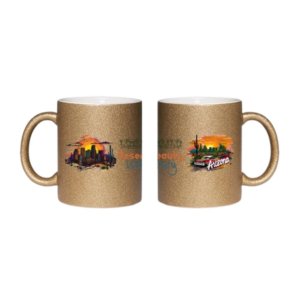 Add sparkle to your daily coffee ritual with our Arizona Desert Beauty Glitter Mug, a beautifully crafted 11oz ceramic mug inspired by Arizona’s iconic desert landscapes, glowing sunsets, and modern urban skyline. Finished with a premium glitter coating, this mug transforms everyday coffee, tea, or hot cocoa into a stylish and joyful experience.