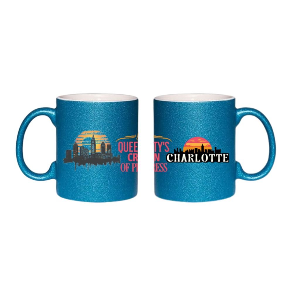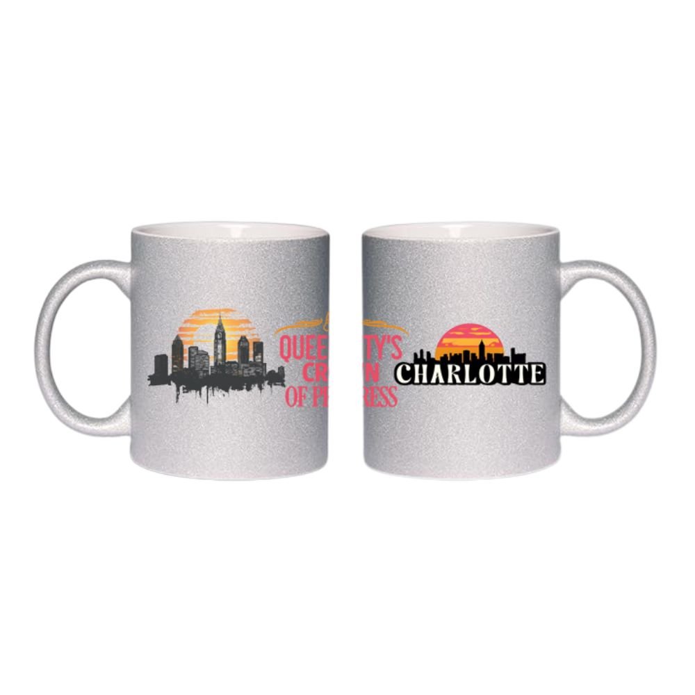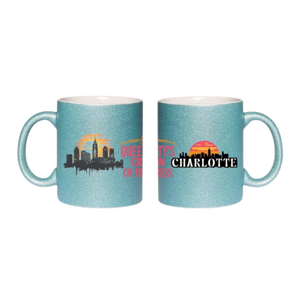 Charlotte Skyline Glitter Mug – Queen City Sunset Sparkle Souvenir
