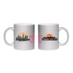 Glossy Ceramic Glitter Mug (11 oz): High-gloss finish enhances the skyline artwork and sparkle.