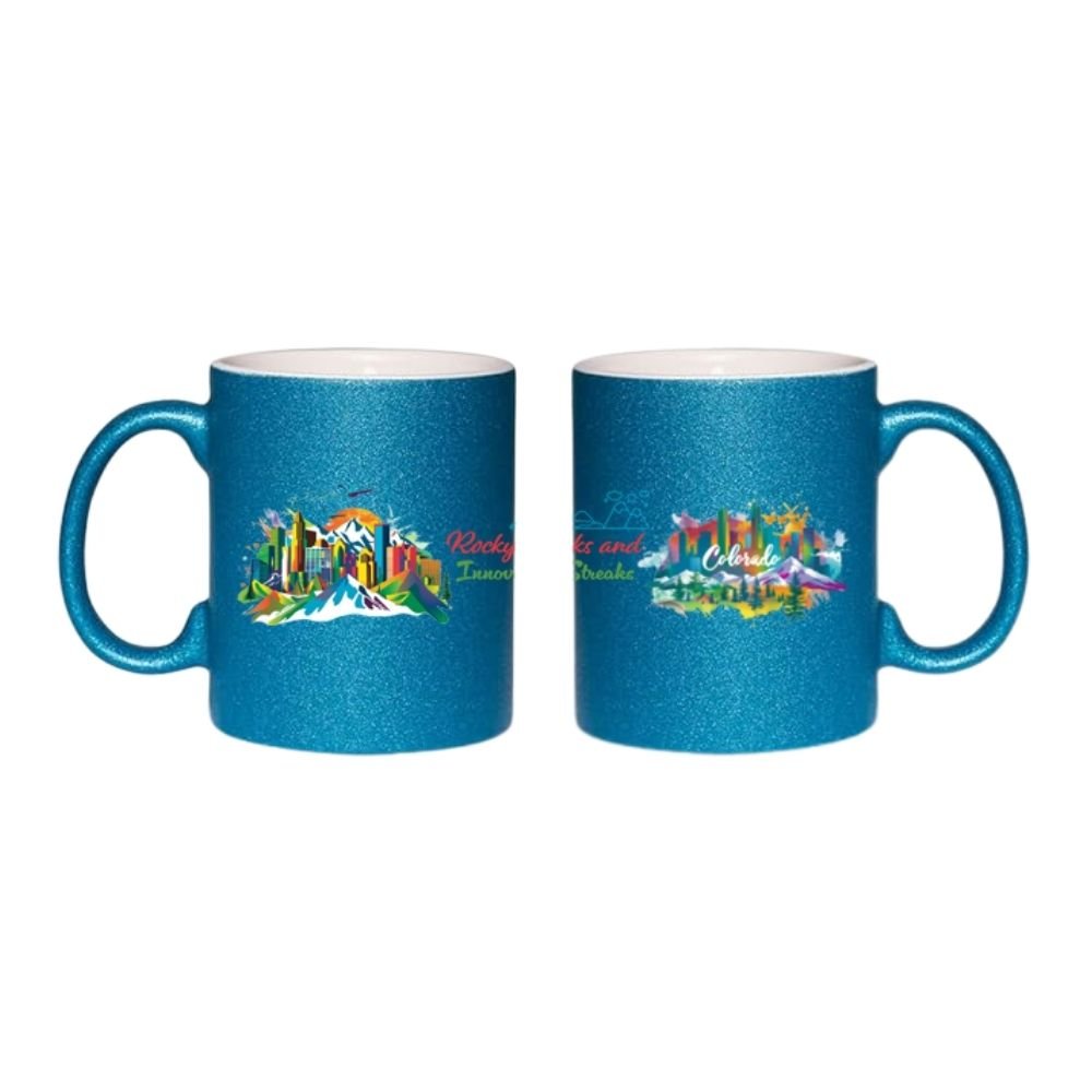 Bring the sparkle of the Rockies to your daily coffee routine with our Colorado Rocky Peaks Glitter Mug. This premium 11oz ceramic glitter mug features vibrant artwork inspired by Colorado’s majestic mountain peaks, innovative city skyline, and adventurous outdoor spirit—finished with a shimmering glitter coating that adds a bold, eye-catching shine to every sip.