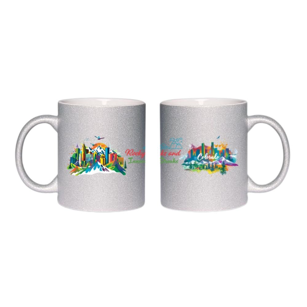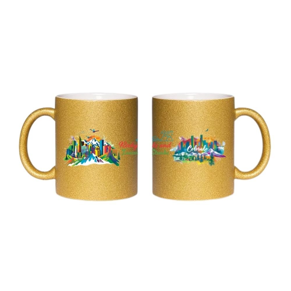 Each glitter finish beautifully highlights the Rocky Peaks and skyline artwork while giving the mug its own unique personality.