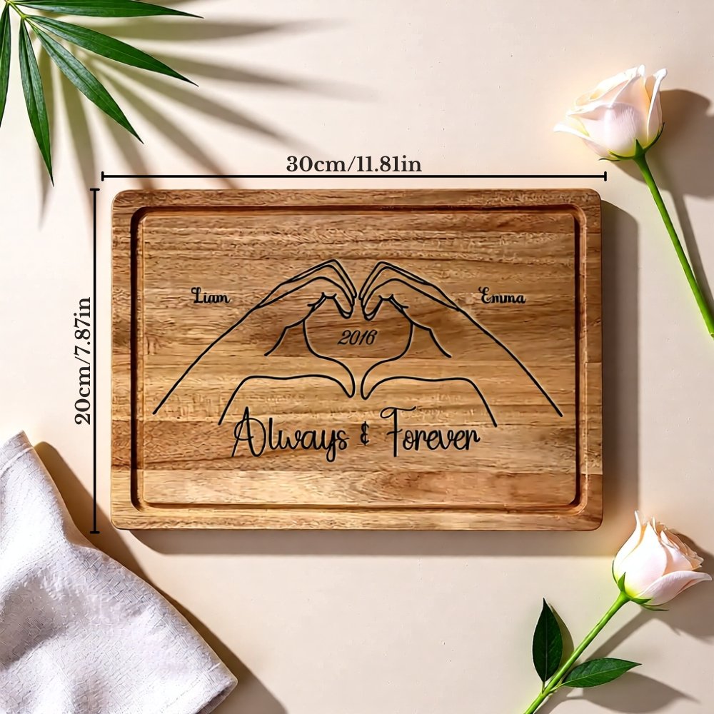 Celebrate love, milestones, and meaningful moments with this Custom Engraved Cutting Board, a timeless keepsake designed for couples who appreciate thoughtful, personalized gifts. Crafted from solid natural wood and finished with precision laser engraving, this cutting board is more than a kitchen accessory—it’s a lasting memory.