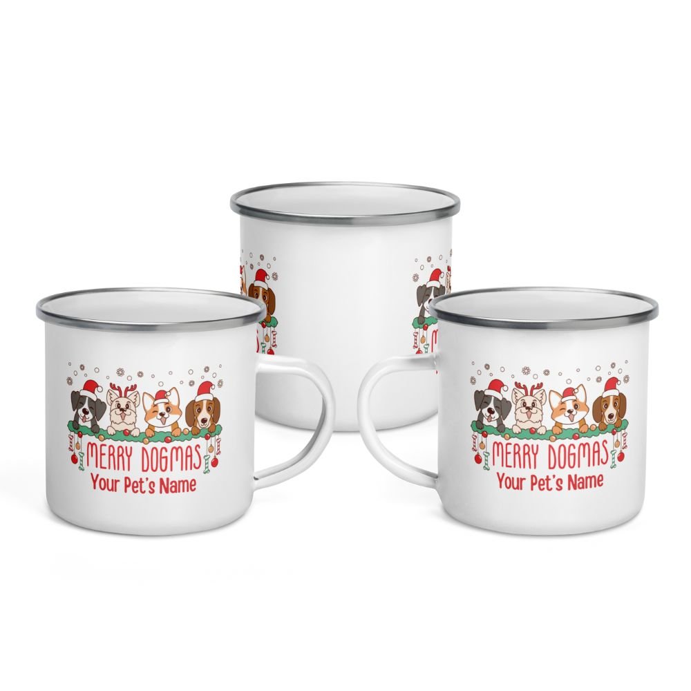 Custom Holiday Mugs, Tumblers & Enamel Cups With Your Pet’s Name