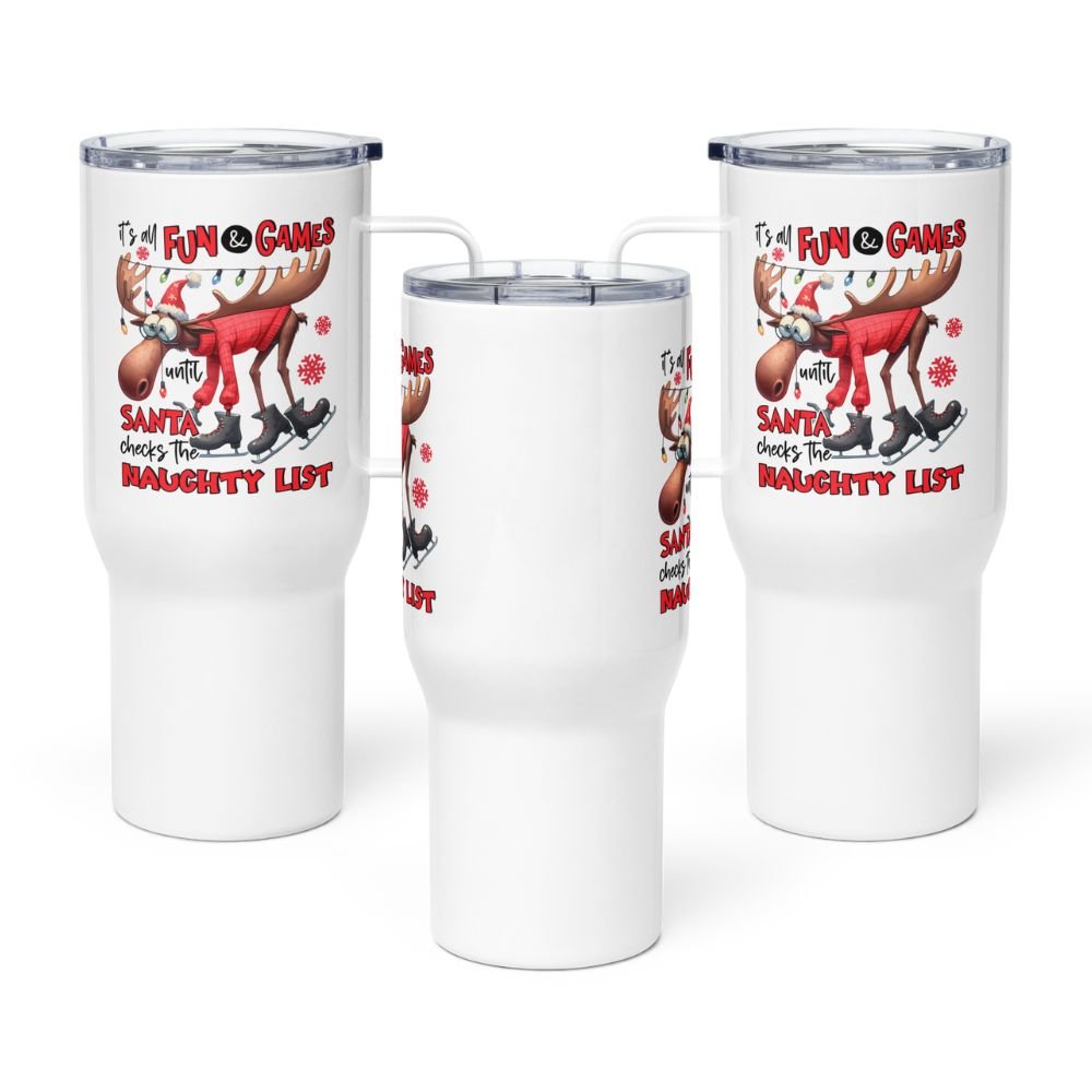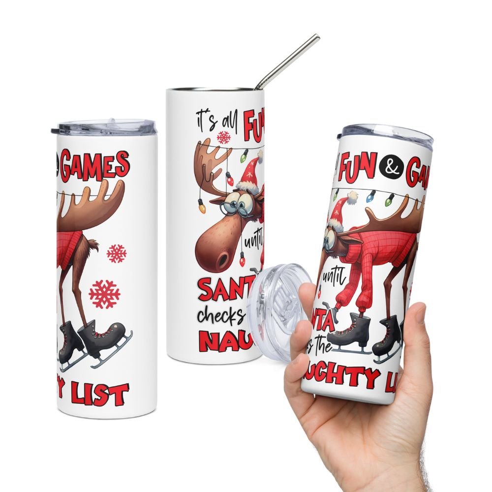 Celebrate the season with a laugh and a sip! Our “It’s All Fun & Games Until Santa Checks the Naughty List” Christmas Drinkware Collection is made for anyone who loves holiday humor, cozy moments, and festive personality in every cup. Whether you’ve been nice or just “nice enough,” this playful reindeer-meets-Santa design adds instant fun to your morning coffee, evening cocoa, or on-the-go holiday drinks.