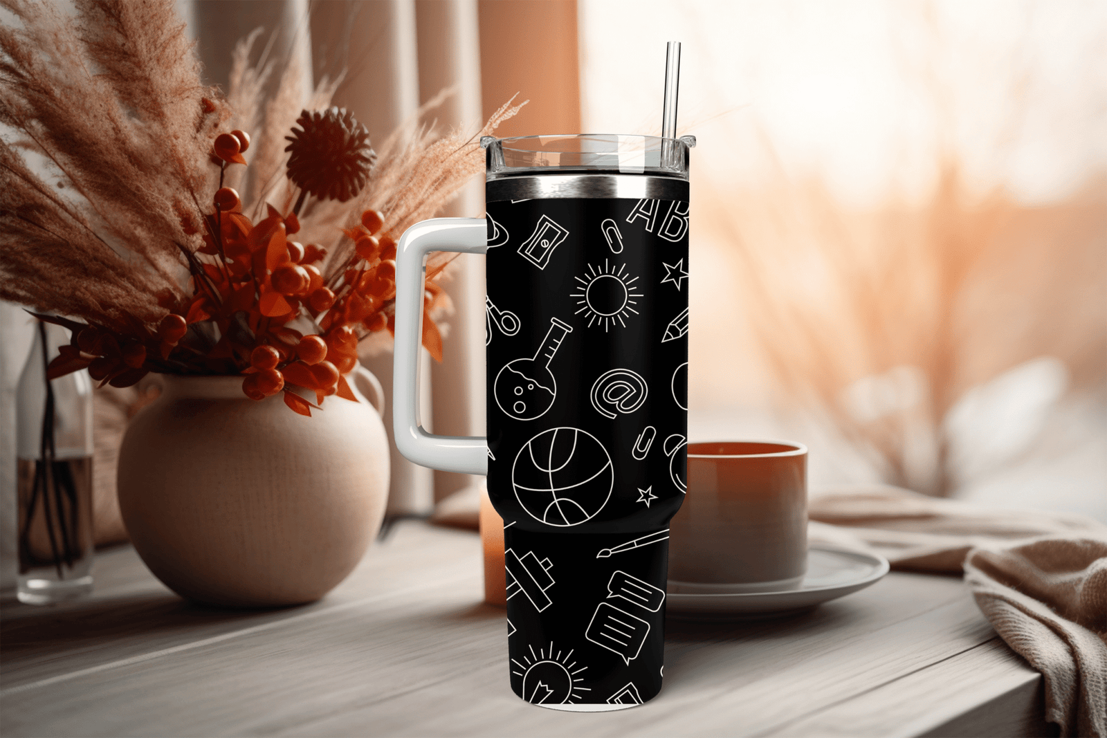 Whether you’re a student hustling between classes or a teacher managing a full schedule, staying hydrated is crucial. Our 40oz travel mug with handle and straw is designed to keep you refreshed throughout the day. With its large capacity, you’ll have enough fuel to power through lectures, study sessions, and more.