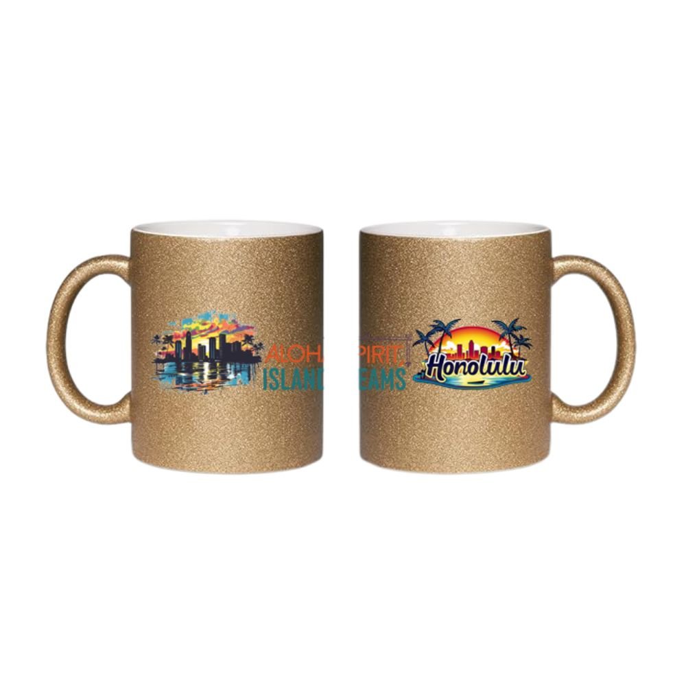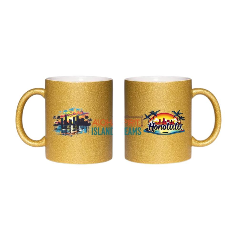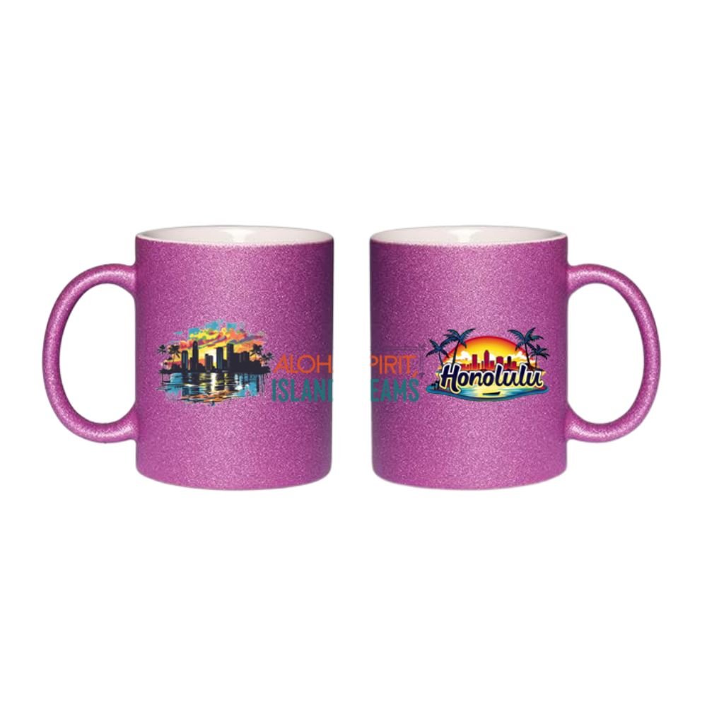 Embrace the magic of Oahu with the Honolulu Skyline Glitter Mug – Aloha Spirit & Island Dreams Edition. Each mug features a radiant Honolulu sunset skyline layered over your choice of 7 dazzling glitter shades, creating a shimmering tropical moment in your hands.