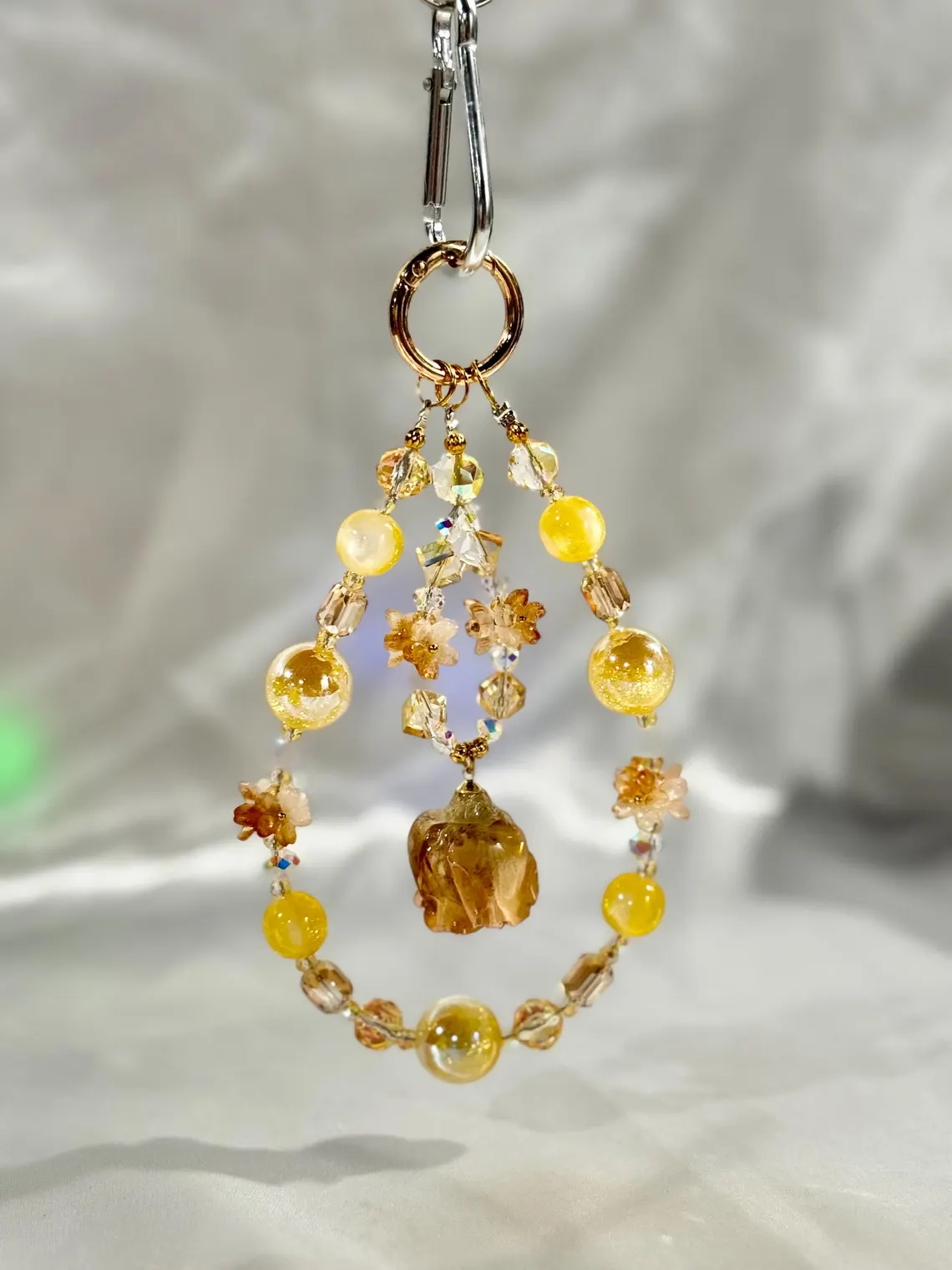 • Handmade with resin beads and glass crystals