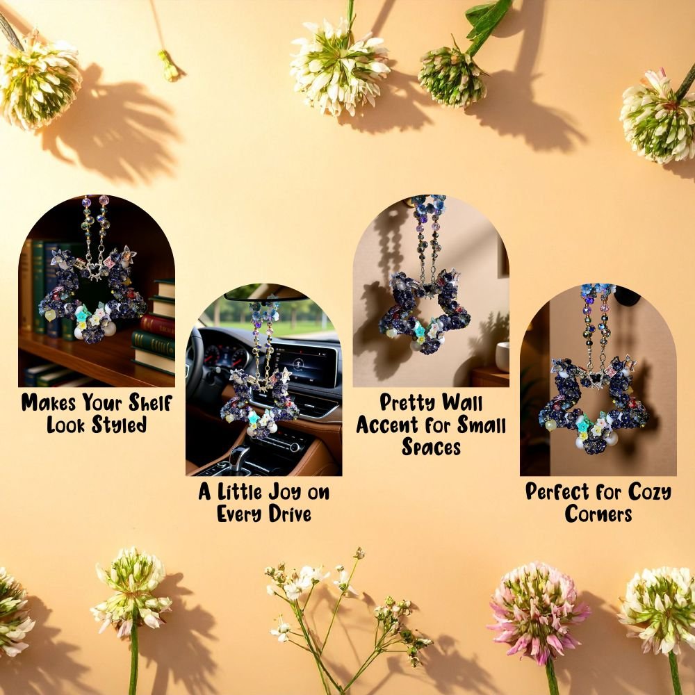 Crafted with a blend of delicate floral beads, crystal accents, and premium metal hardware, this hanging charm is more than décor—it’s a statement of style. Every piece is handmade, making each charm one-of-a-kind with subtle variations that highlight its artisanal quality.