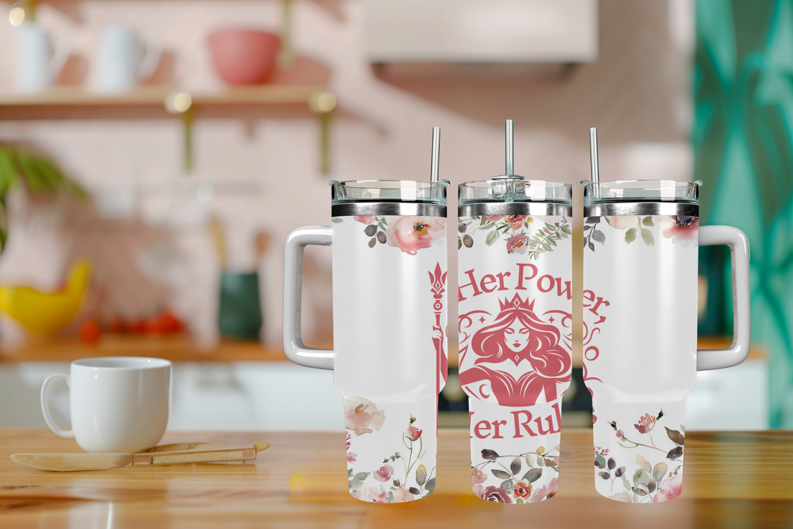 Her Power, Her Rules 40oz Travel Mug With Handle and Straw