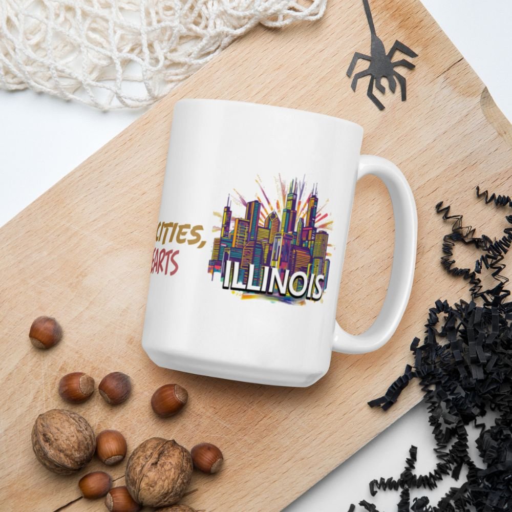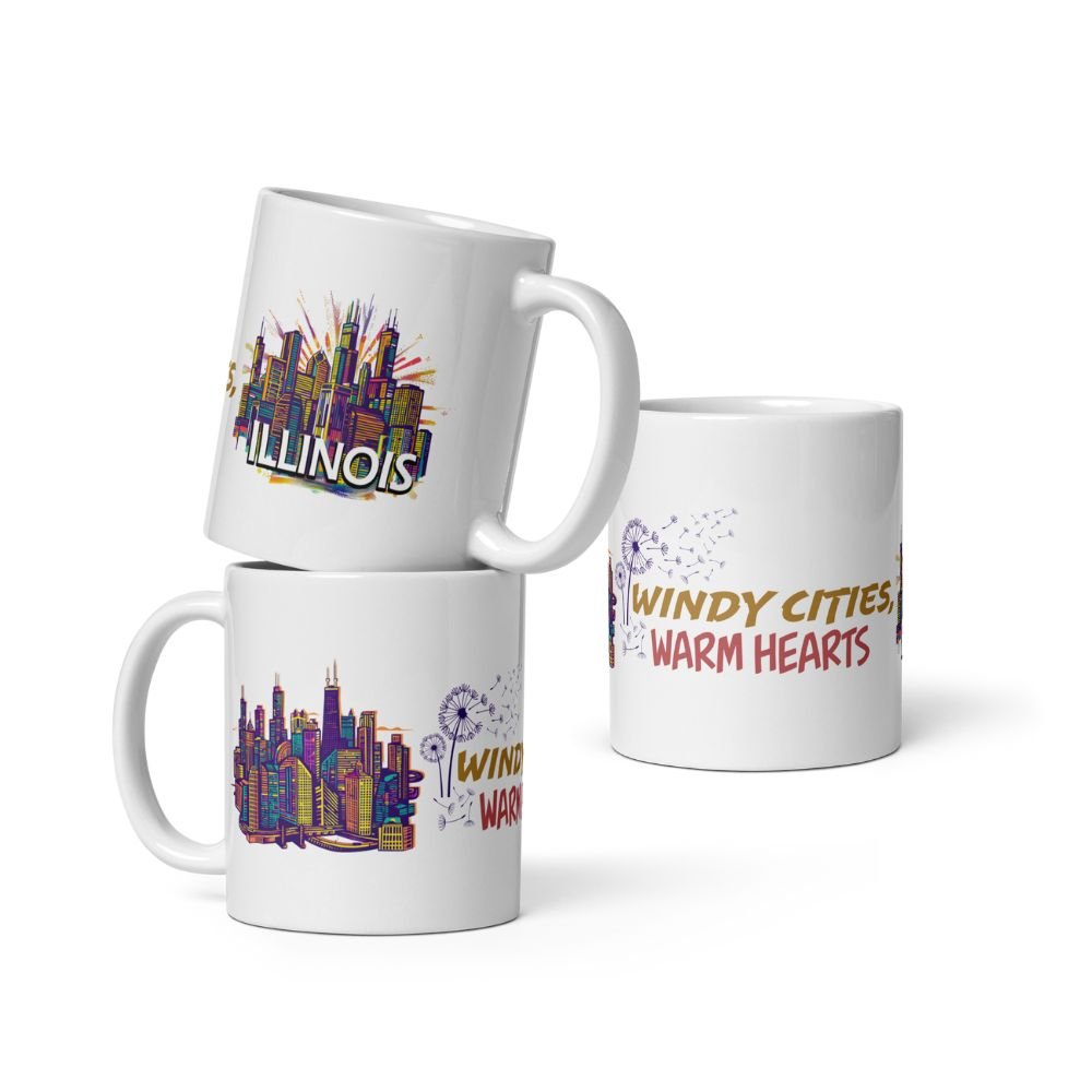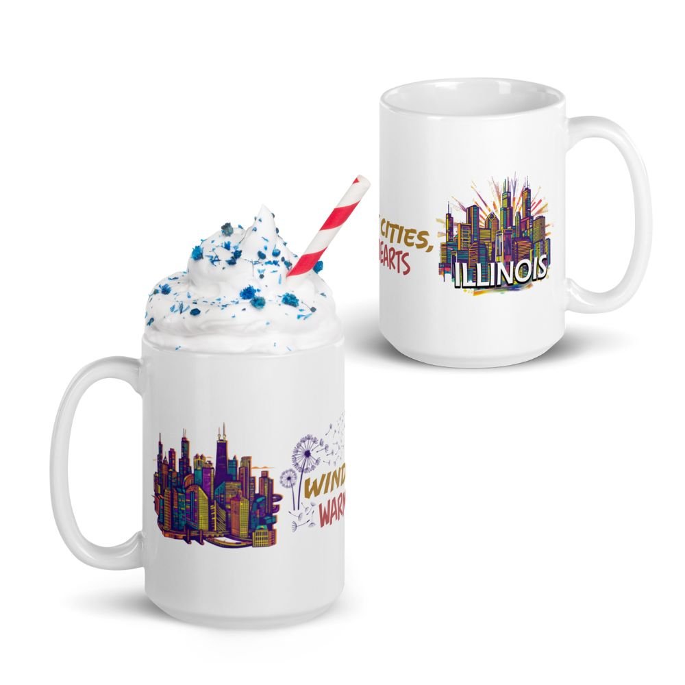 Perfect for coffee or tea, featuring a smooth, high-gloss finish that enhances the vivid Illinois skyline and Windy City artwork.
