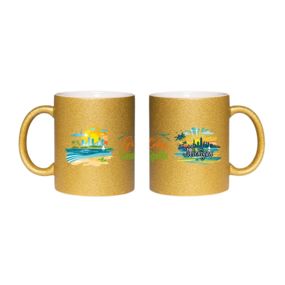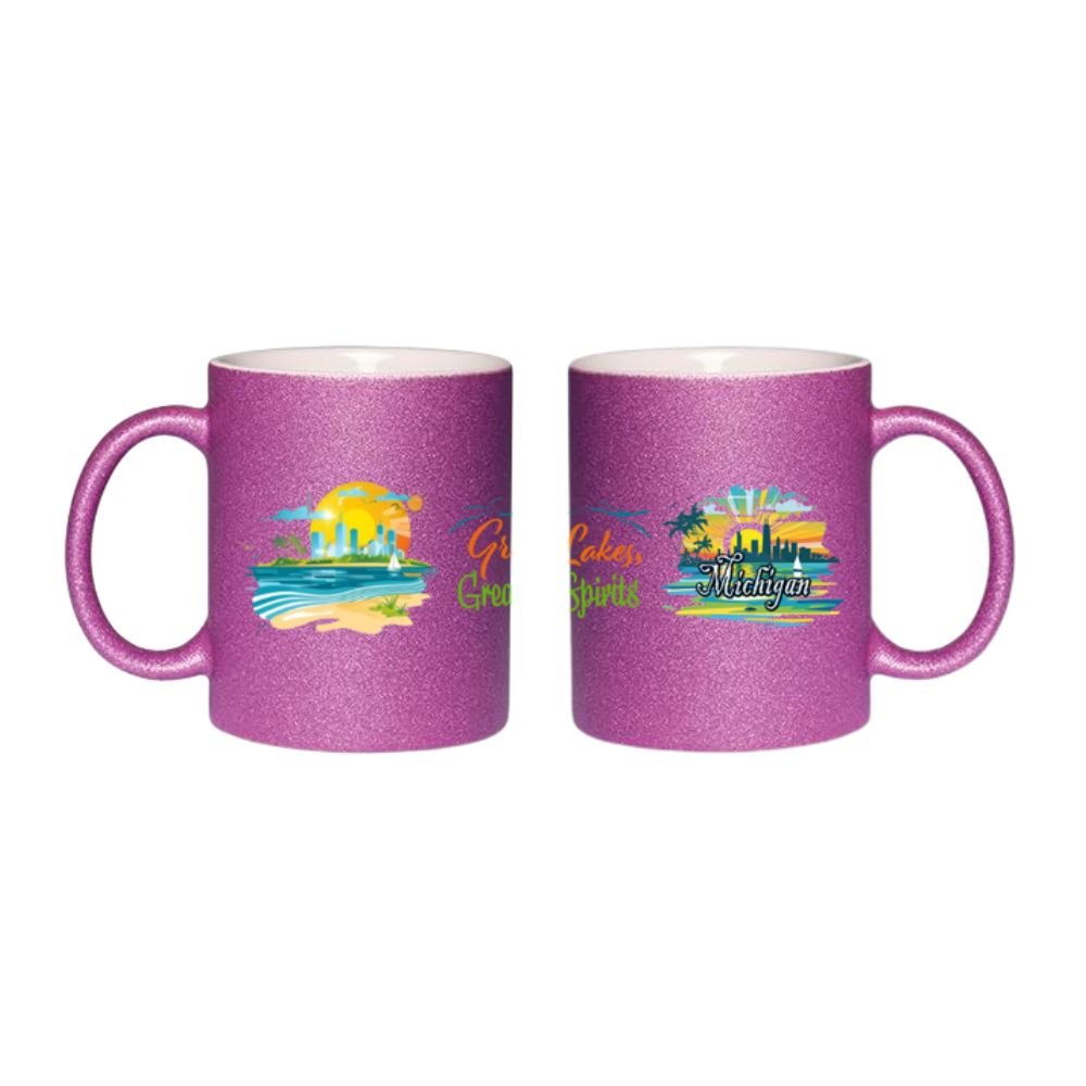 Celebrate the beauty, strength, and spirit of the Great Lakes State with our Michigan Great Lakes Glitter Mug. This premium 11oz ceramic glitter mug features vibrant artwork inspired by Michigan’s iconic lakes, skyline, and outdoor charm—finished with a shimmering glitter coating that adds brilliance and joy to every sip.