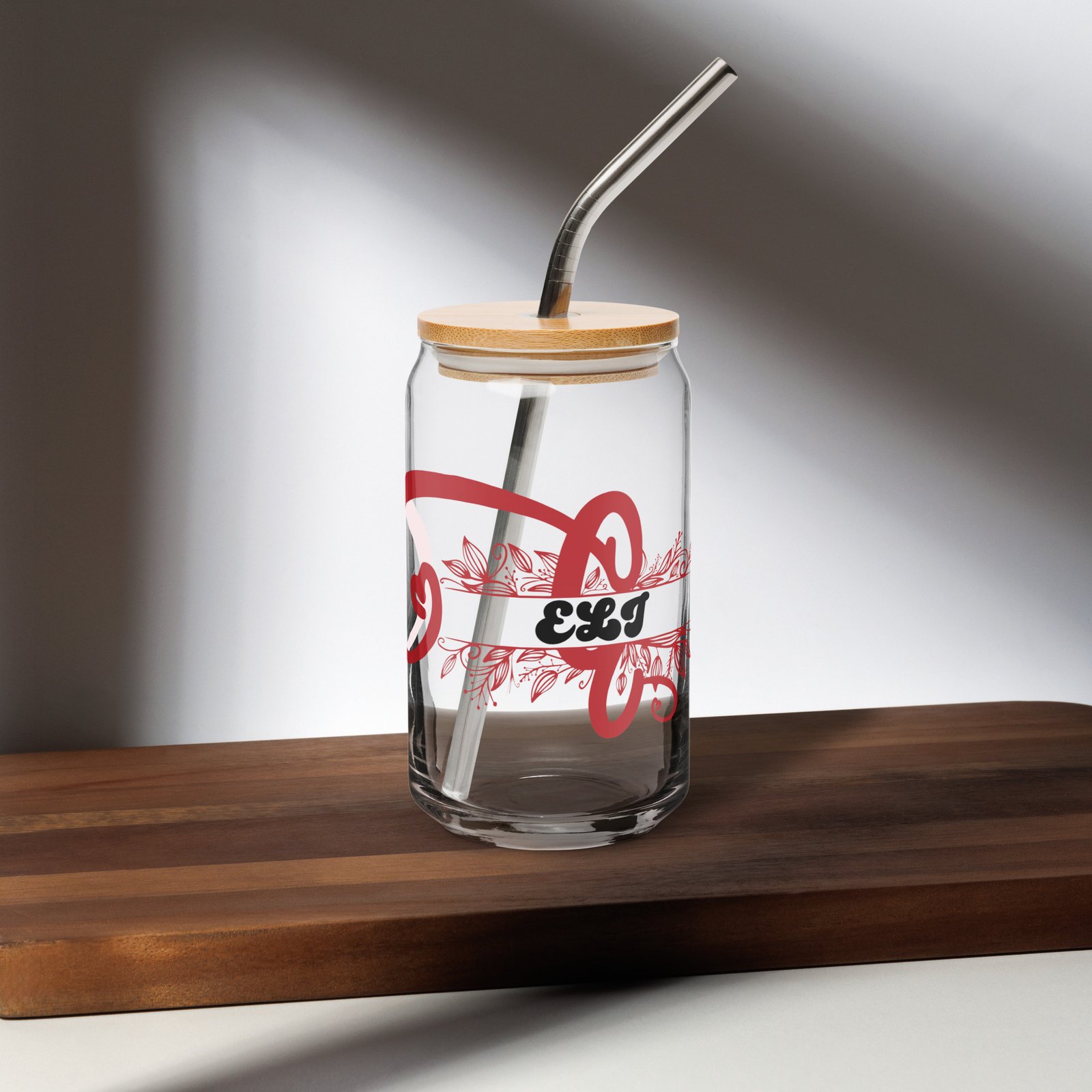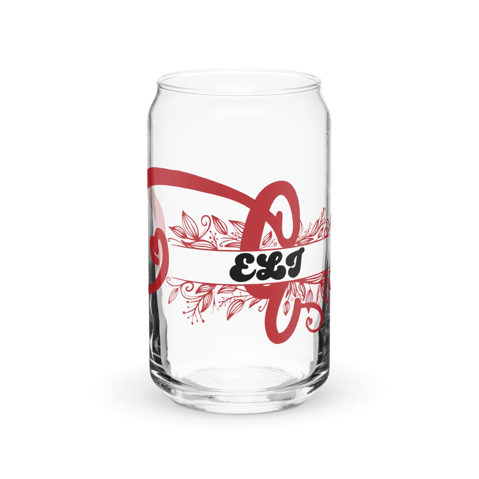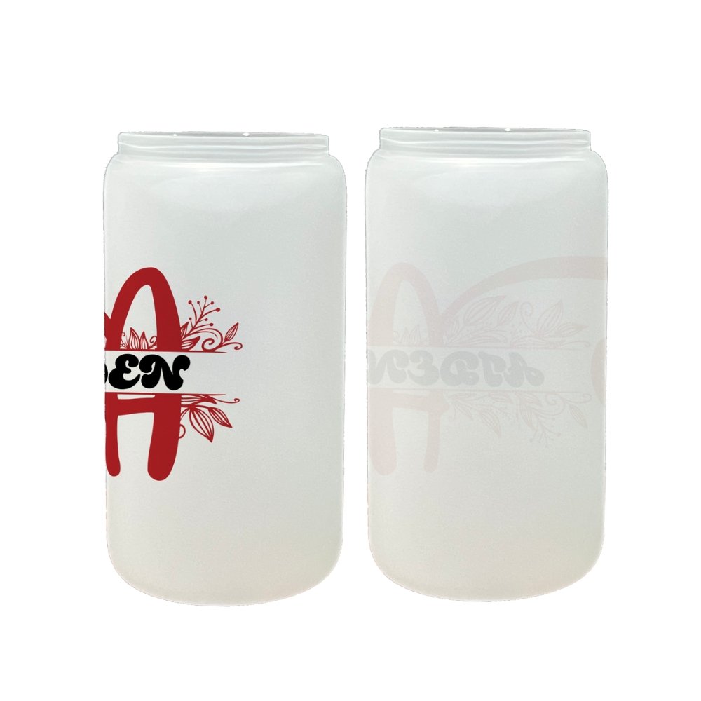 Elevate your daily drinkware with our Personalized 16oz Can-Shaped Glass Tumbler, thoughtfully designed to combine style, functionality, and personal expression. Available in two beautiful finishes — Clear or Frosted Glass, this custom tumbler is made just for you, featuring an elegant monogram initial paired with a name in graceful script and accented by delicate leaf flourishes.