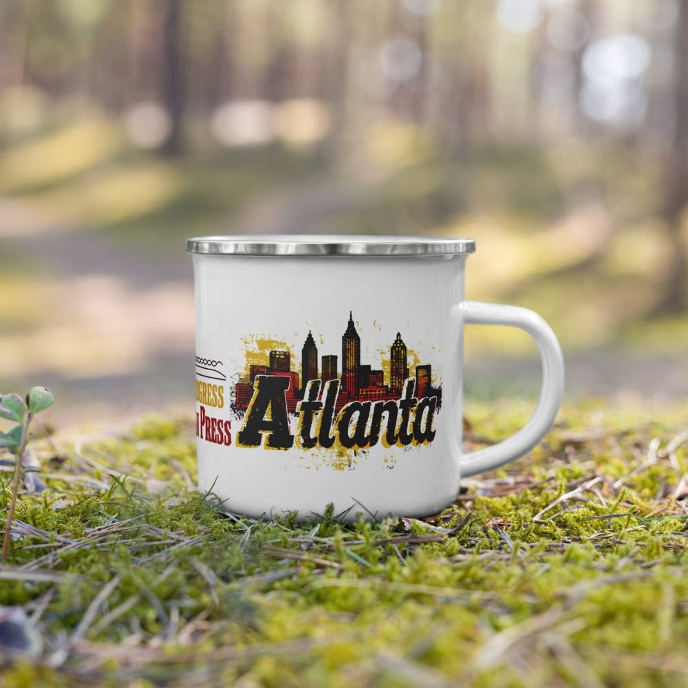 Bring the vibrant soul of Atlanta to your everyday routine with the Atlanta: “Peaches, Progress, and Southern Press.” Drinkware Collection — a stylish lineup of ceramic mugs, stainless steel tumblers, enamel cups, water bottles, and travel mugs designed for proud locals, travelers, and Southern culture lovers.
