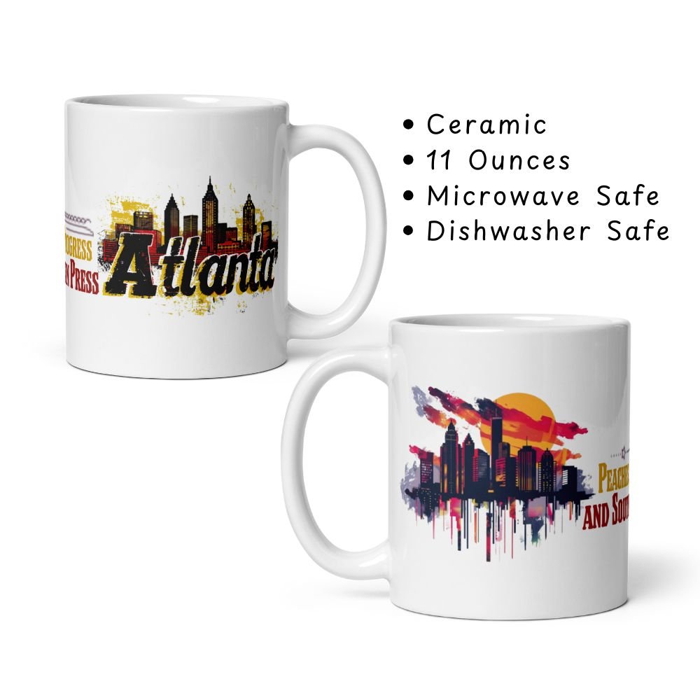 Atlanta Skyline Mug Collection – “Peaches, Progress, and Southern Press.”