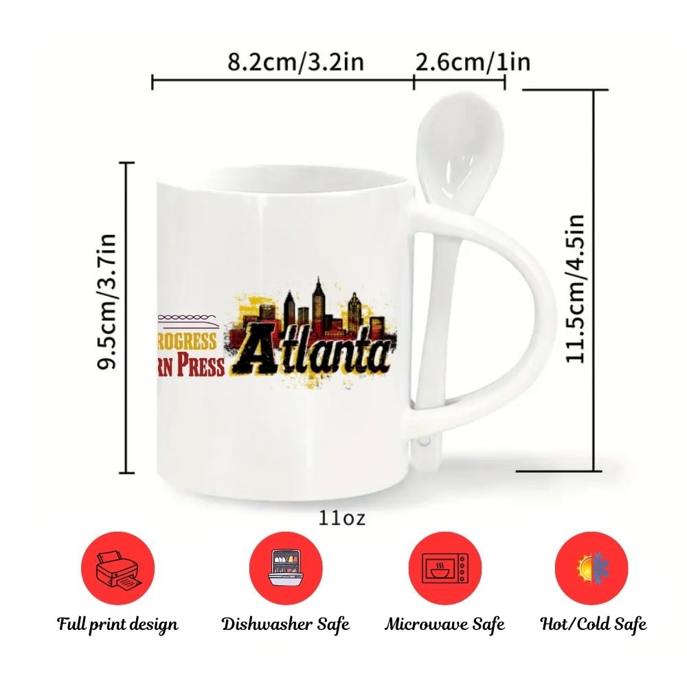 Perfect for coffee or tea, with a smooth, high-gloss finish that enhances the vivid Atlanta artwork.