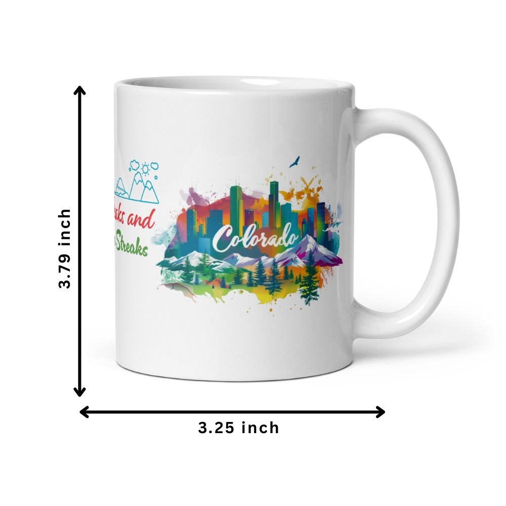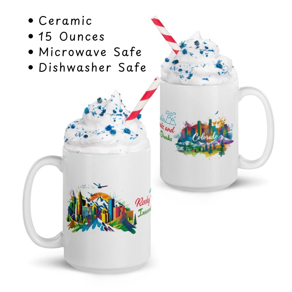 Perfect for coffee or tea, featuring a smooth, high-gloss finish that enhances the vivid Colorado skyline and Rocky Mountain artwork.