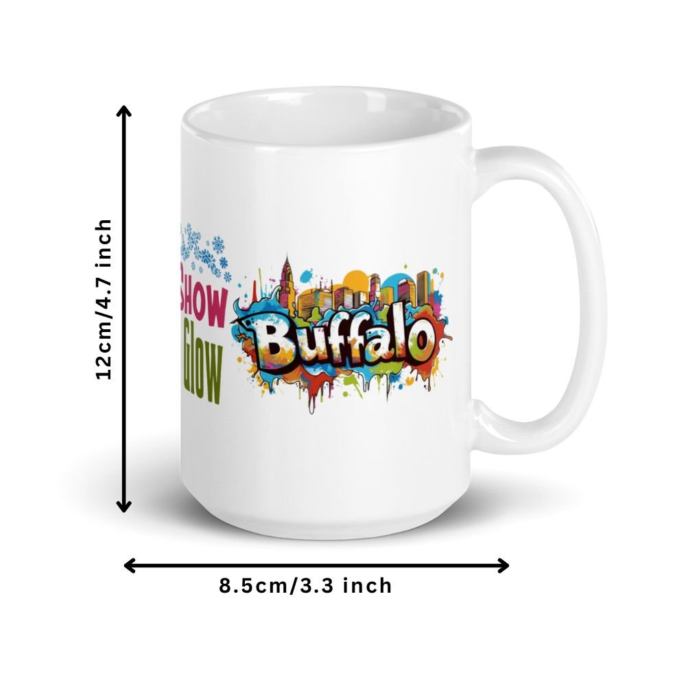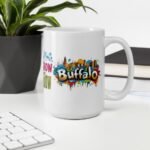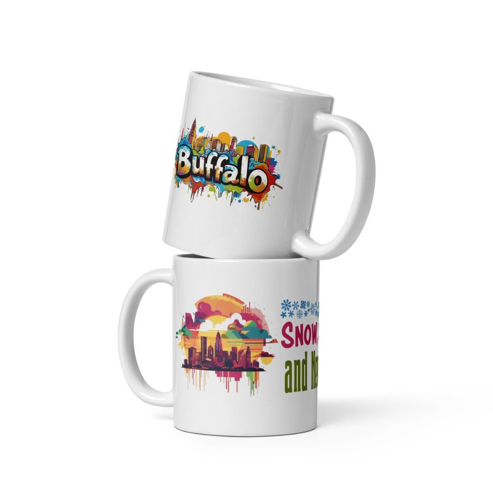 Perfect for cozy winter mornings — the high-gloss ceramic enhances the vivid Buffalo skyline artwork.